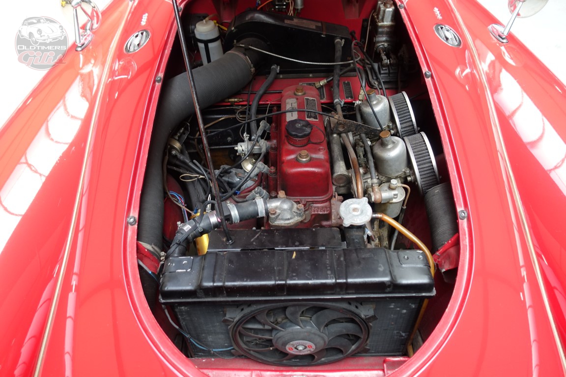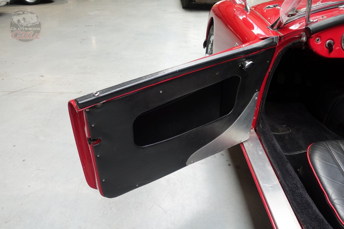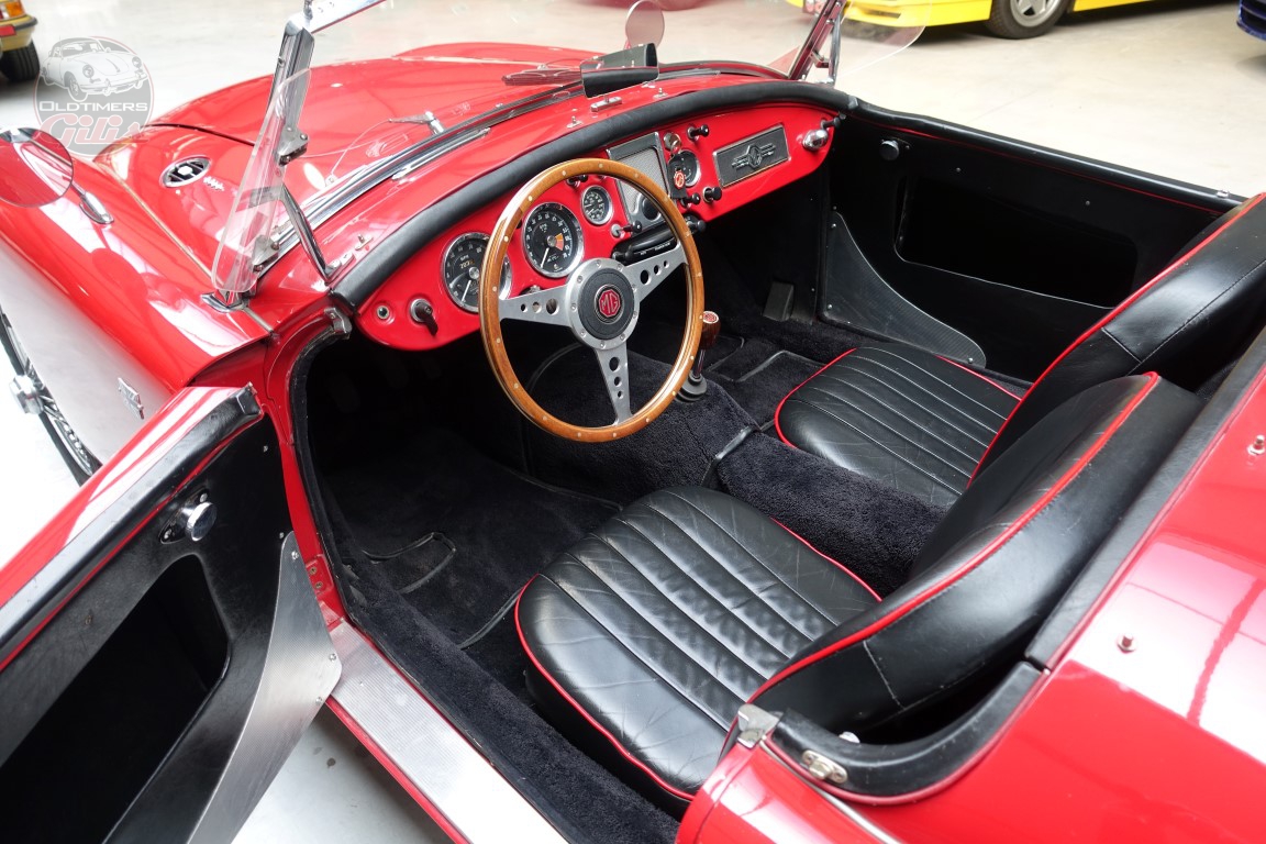 Dit exemplaar is uitgevoerd in een dieprode lak die de vloeiende, tijdloze lijnen van de MGA prachtig accentueert.
